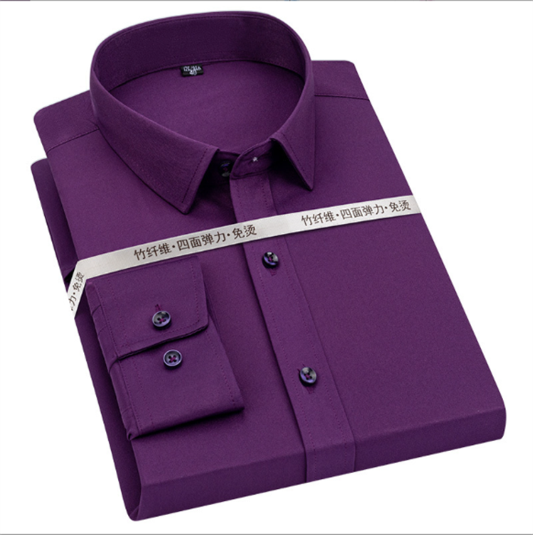 2024 Custom Logo Elastic Anti-wrinkle Men's Business Long-sleeved Shirt SOLID Color Non-ironing Slim Shirt