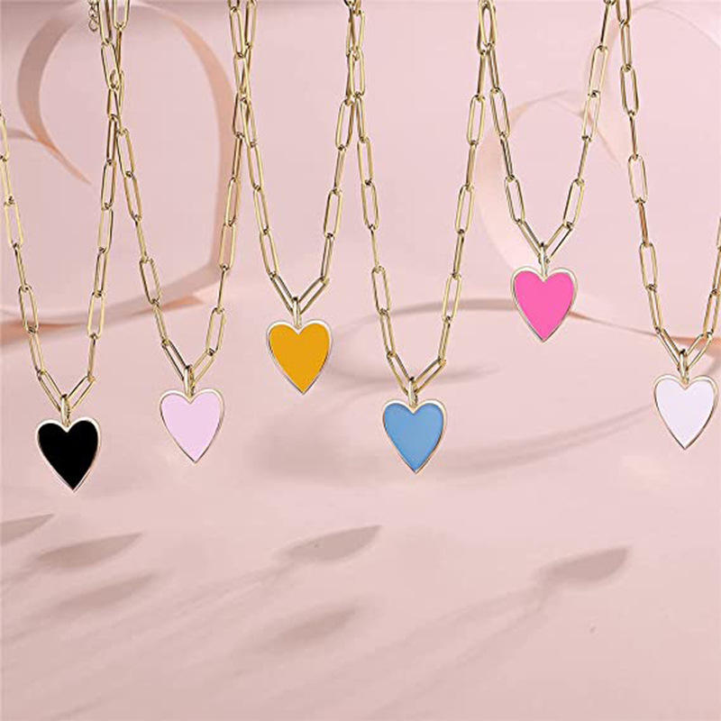 Collana 2024 su misura in acciaio inossidabile alla moda piccolo ciondolo a cuore colorato con catena collana cuore smaltato placcato oro