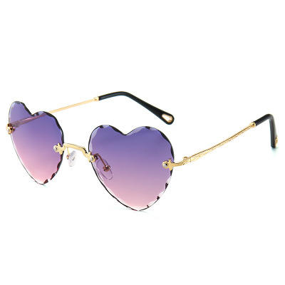 2024 Custom Trendy Metal Love Gradient Shades Ladies Rimless Sun Heart Glasses Shaped Sunglasses Women