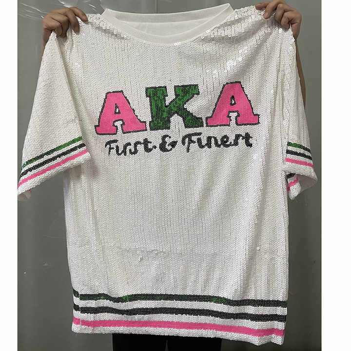2024 fabbrica all'ingrosso nuovo arrivo personalizzare paillettes greco Aka sorellanze donne con paillettes Jersey vestiti