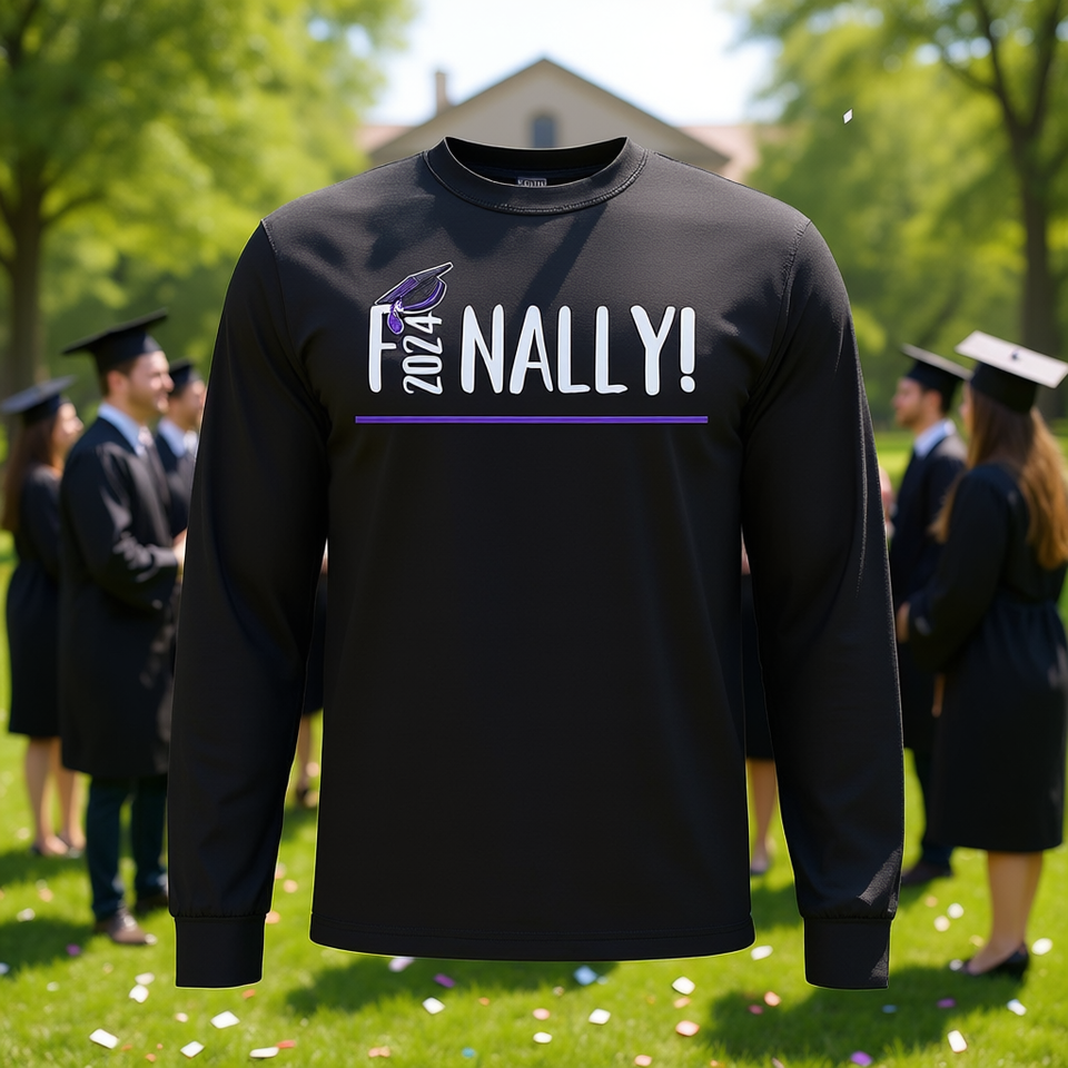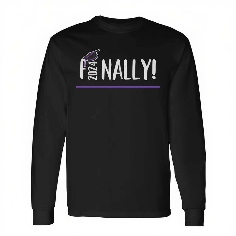 Maglietta a maniche lunghe con grafica divertente per la laurea 2024: finalmente laureato!