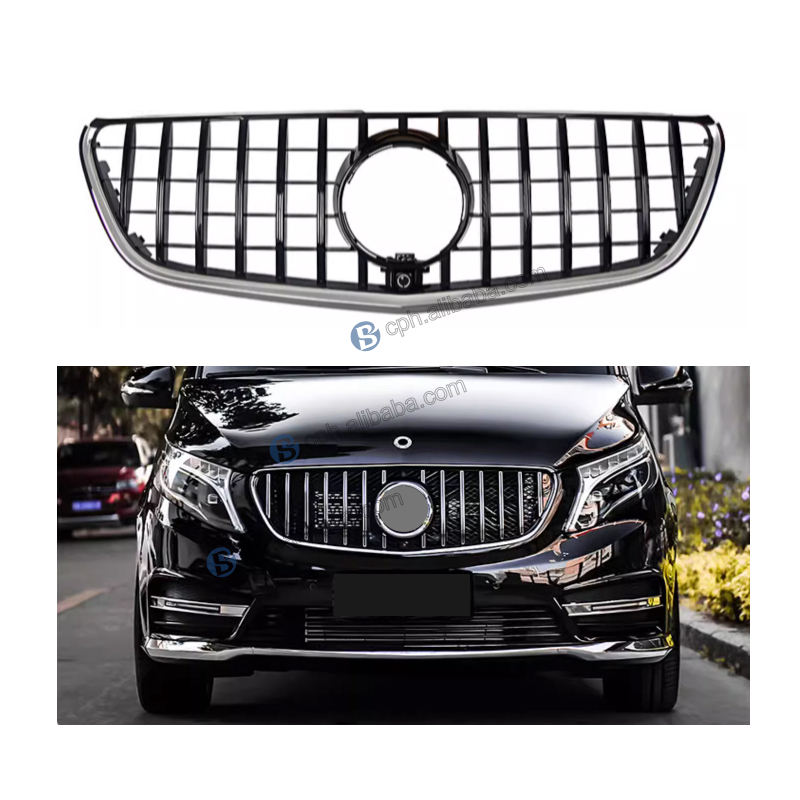 2024 GT Style Car Accessories Black Silver Auto Front Grill for 2020-2021 for Mercedes Benz V Class W447 V260L Durable ABS Mater