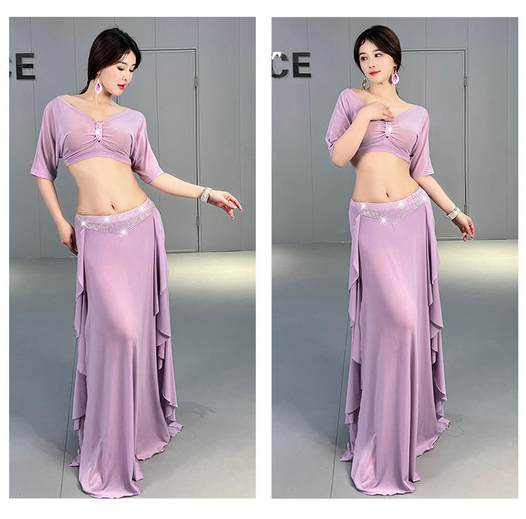 2024 High Quality New V-neck Hot Rhinestone Oriental Dance Performance Costumes Set for Women Belly Dance