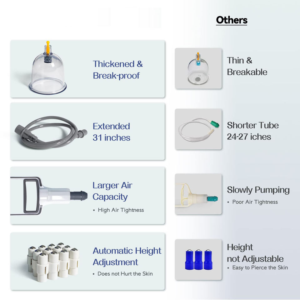 Benefici della coppettazione:SOLLIEVO DEL DOLORE, Dimagrimento del corpo, Cura della pelle, Terapia dei tessuti, Terapia muscolare, Antistress