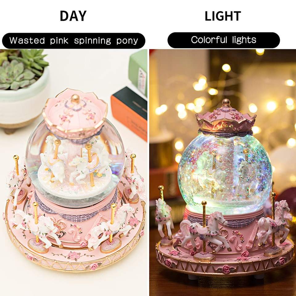 Carillon Giostra di Vetro con Unicorno Squisitamente Intagliato e Luci LED Colorate, Grande Successo 2024