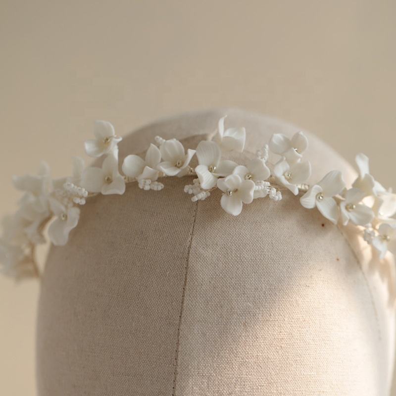 2024 Ins Ceramic Headband Small Beads White Flower Hair Accessories Bridal Wreath Hairband Jewelry for Garland Wedding Crown