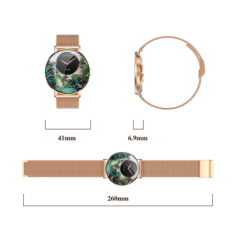 2024 KM88 Women's Ultra-Thin Smart Watch 3D Dynamic Interface 1.32inch AMOLED Screen Gold Steel Smartwatch