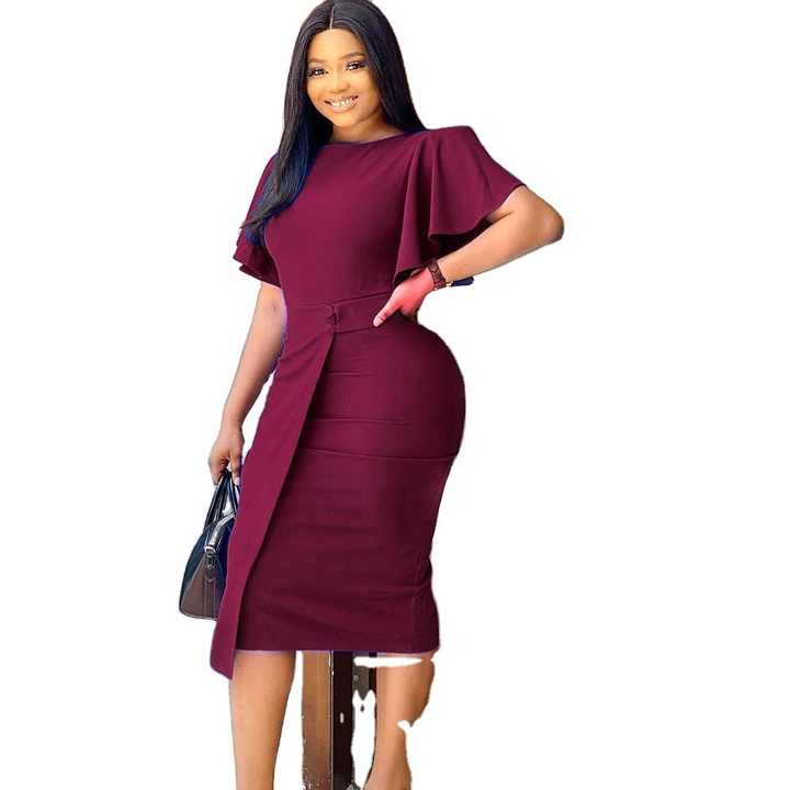 2024 Latest Summer Flare Sleeve O-neck Fashion a Line Party Dresses Women Evening Dresses Plus Size Lady Elegant Office Dress