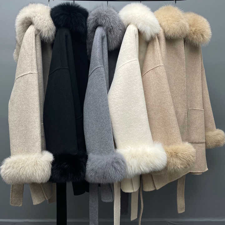 2024 Luxury Women Real Woolen Cashmere Coats Outerwear Luxury Real Fur Jacket Streetwear Elegant Oversized Alpaca Fur Coats