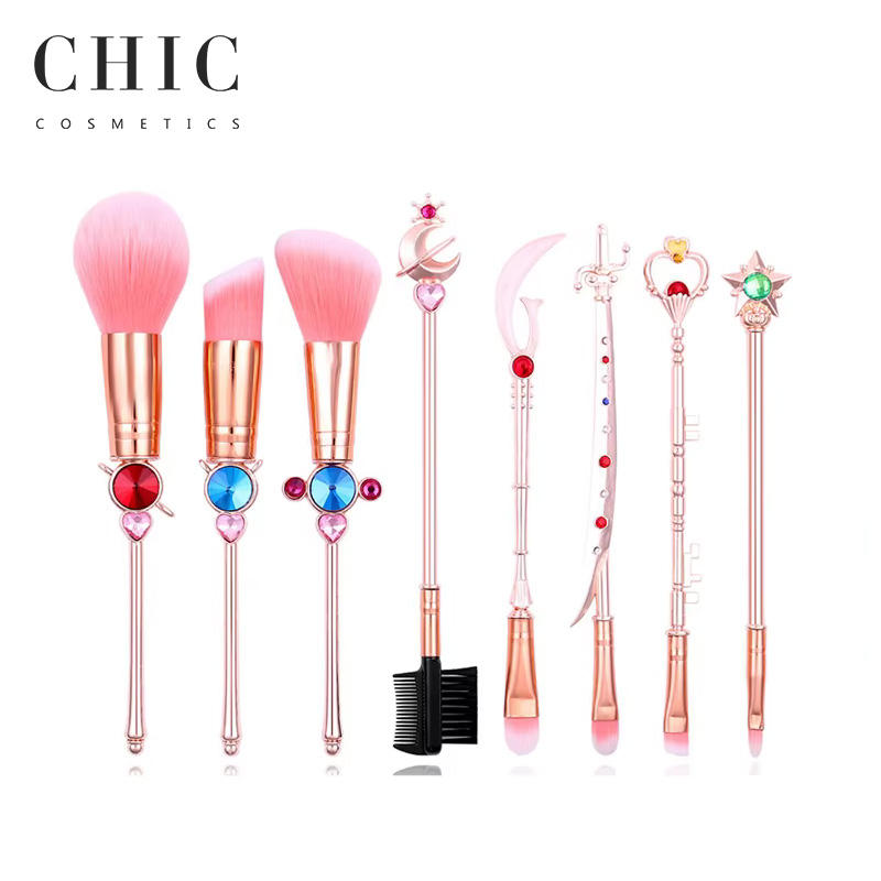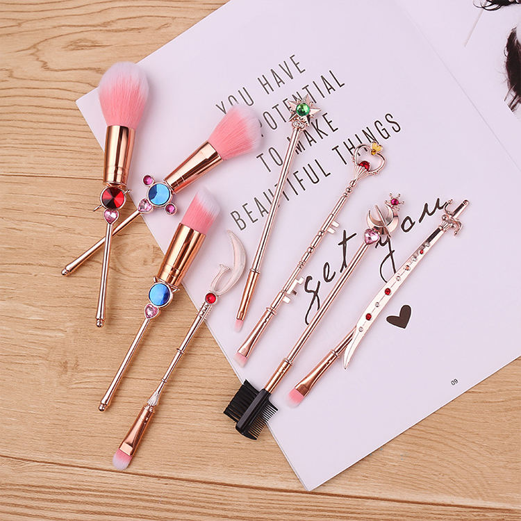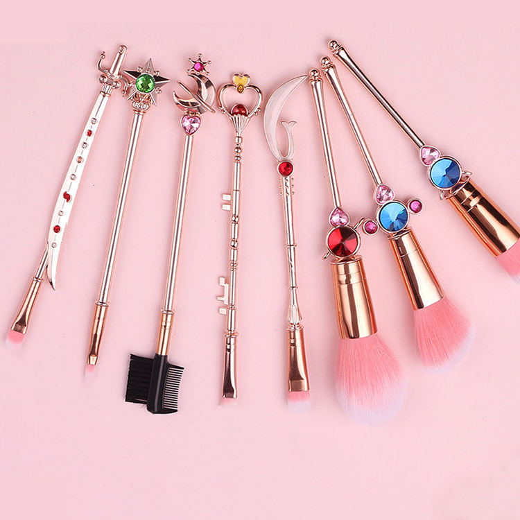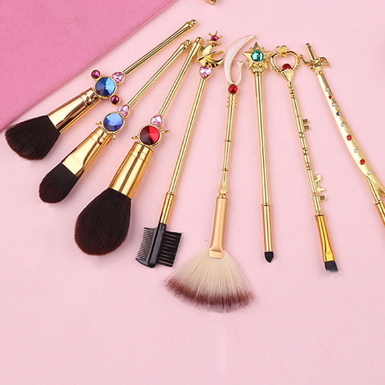 Set di 8 Pennelli per Trucco Sailor Moon in Metallo, Accessorio Cosmetico da Ragazza Magica, Must-Have 2024