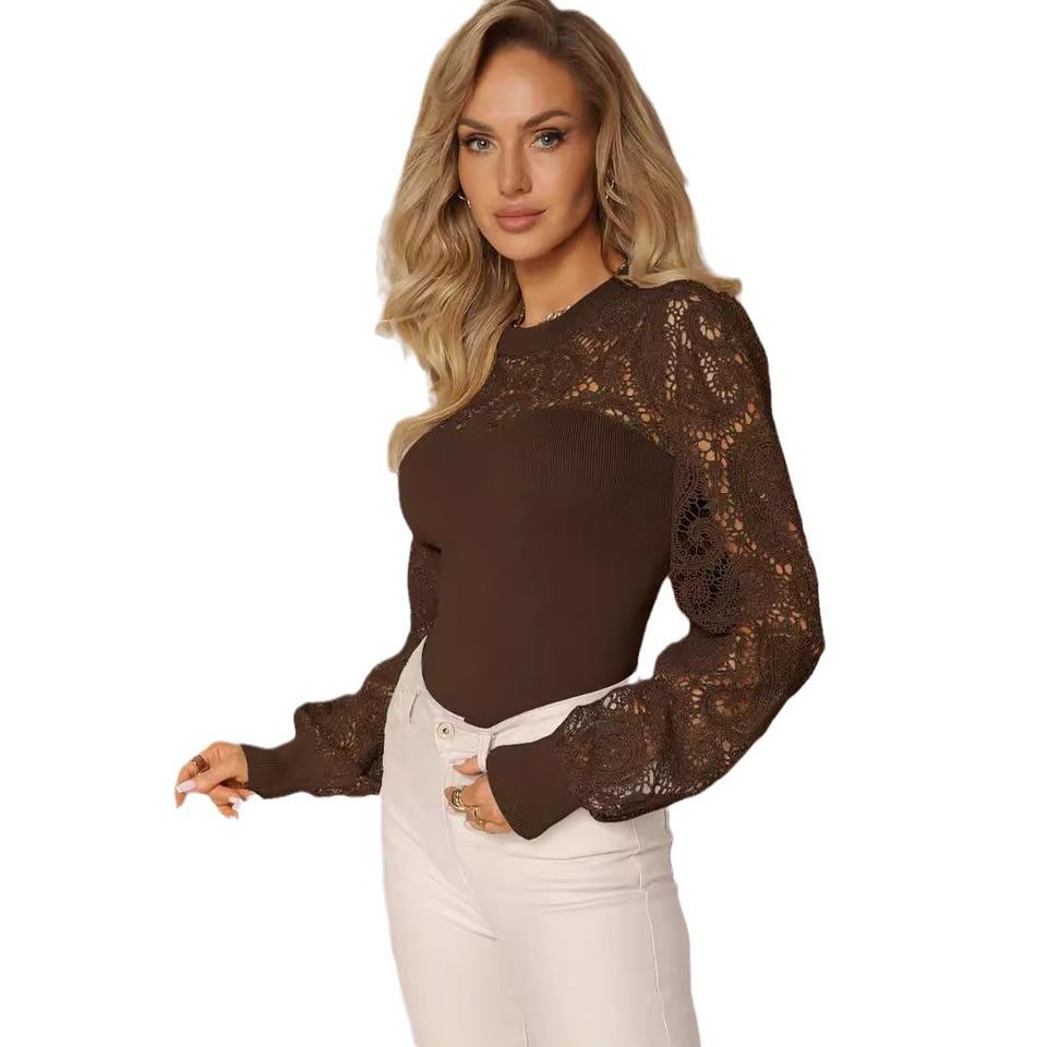 2024 nuovo arrivo blusa in velluto nero Top collo quadrato a maniche lunghe camicette da donna alla moda camicie di pizzo eleganti senza schienale