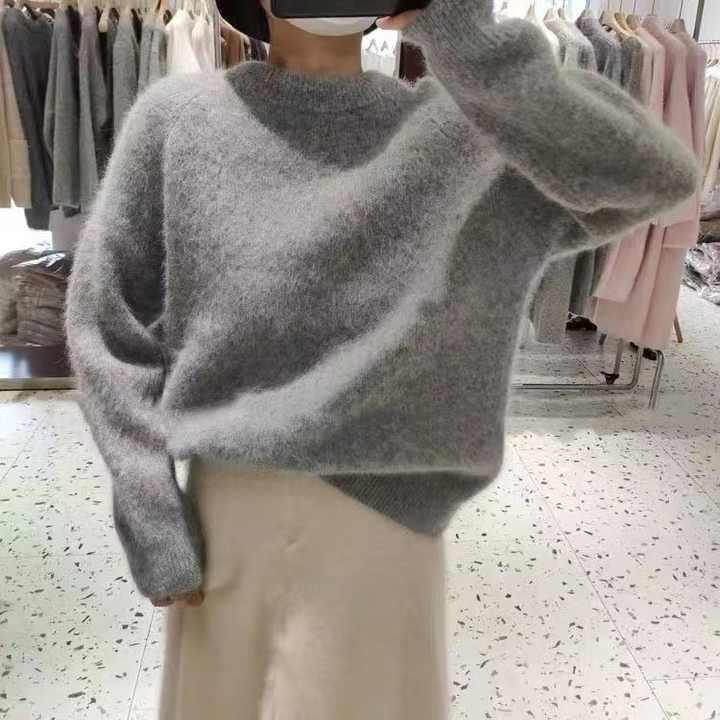 2024 New Arrival Oversized Merino Wool Polyester Sweater Handmade Knit Pullover Solid Wool Sweater for Women