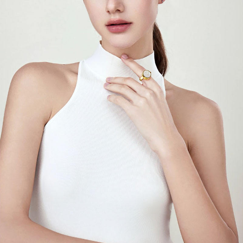 2024 New Arrival Pearl Lip Balm Ring Adjustable 18K Gold Stainless Steel Locket Ring for Women