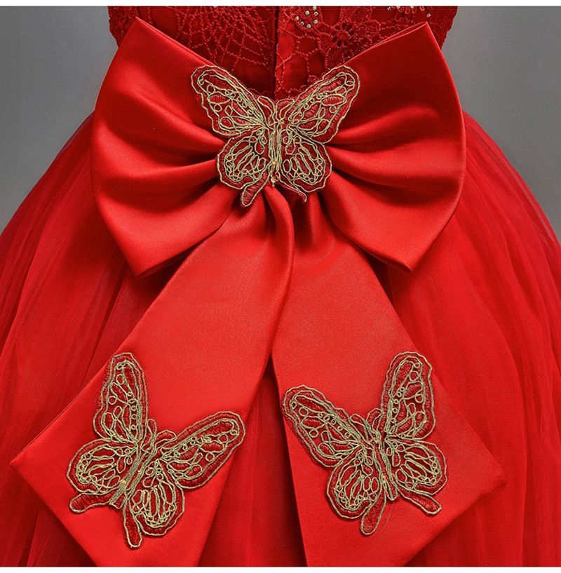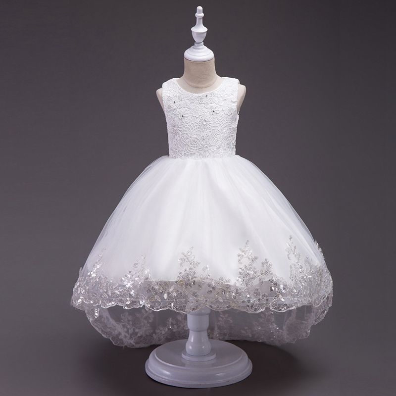 2024 New Ball Gown Girls Fashion Embroidered Lace Sleeveless Dress Girl Long Tail Dress for Festival Party Birthday Gifts