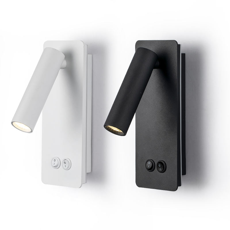 2024 New Black White Indoor Modern Hotel Wall Reading Lamp Bedroom Living Room Bedside Light Wall Sconce with Plug