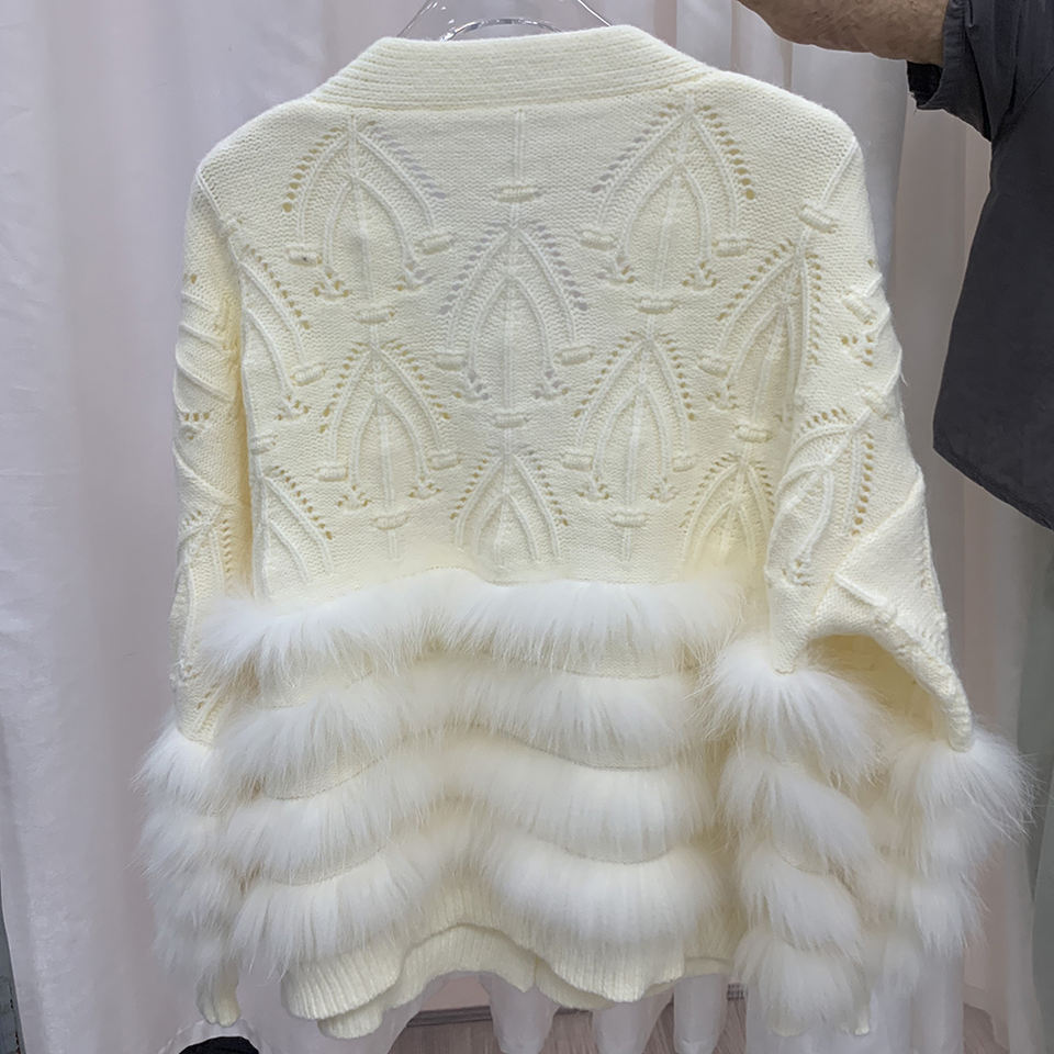Cardigan autunno lavorato a maglia di nuovo Design 2024 con vera pelliccia di volpe maglione vera pelliccia maglione vera pelliccia per le donne