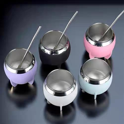 Tazza Gourd Mate per Yerba Mate Stile Argentino e Spagnolo di Grande Successo, Nuovo Design 2024, in Acciaio Inox Rivestito in Pelle