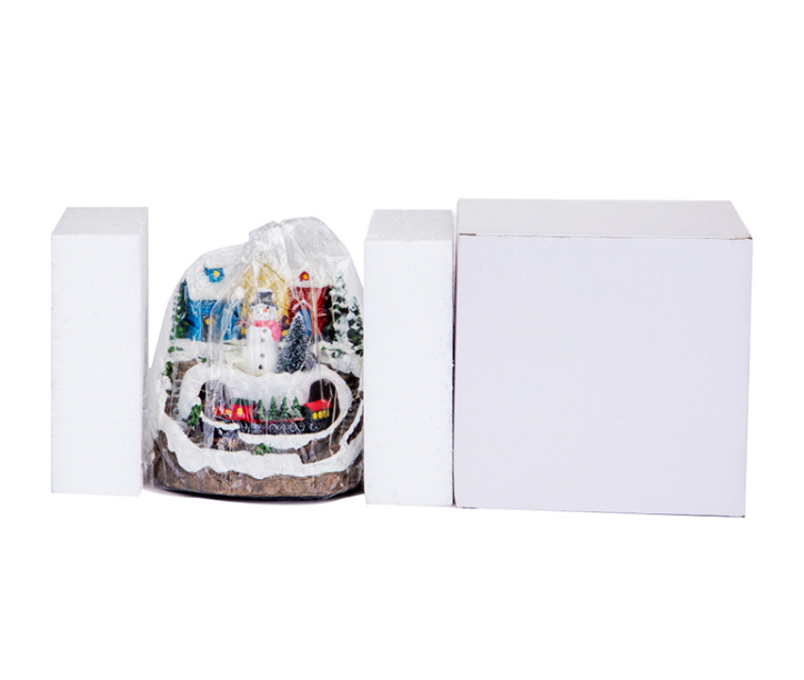 2024 Nuovo design Artigianato in resina Luci a LED Albero di Natale Decorazione a fiocco di neve Trenino Set per villaggio natalizio Case musicali