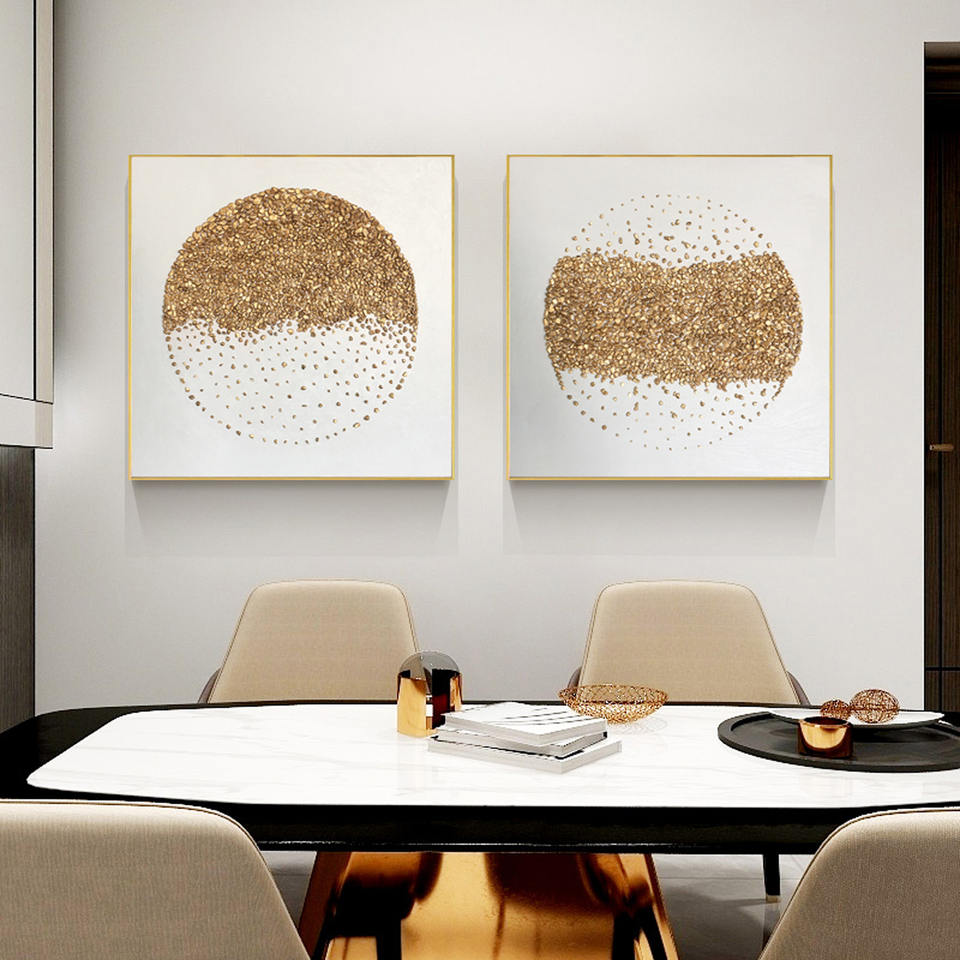 2024 New Drawing Art Supplies 3d Handmade Gold Stone Frame Paintings on Canvas Wall Art for Home Decor