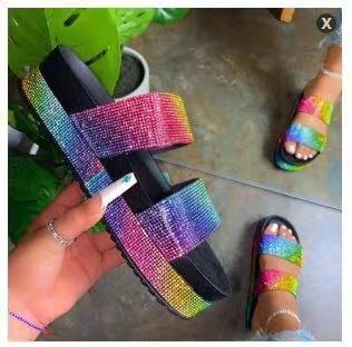 2024 New European Summer Women Elegant Transparent High Platform PU Rubber Sole Crystal Shoes Flat Strappy Sandals Slippers