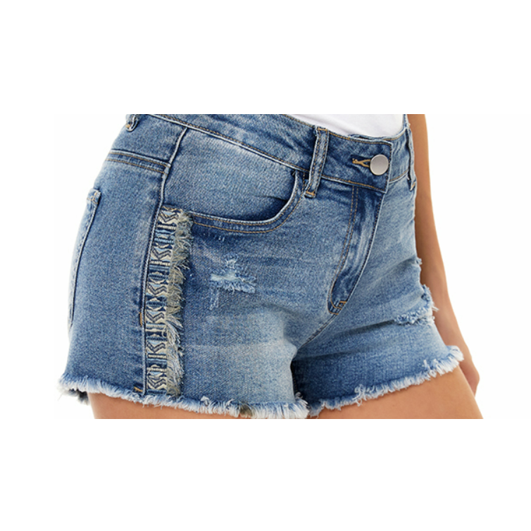 2024 New Fashion High Waist Breathable Casual Short Women Jean Shorts Straight Style with Washed Technics Knitted Weaving Method