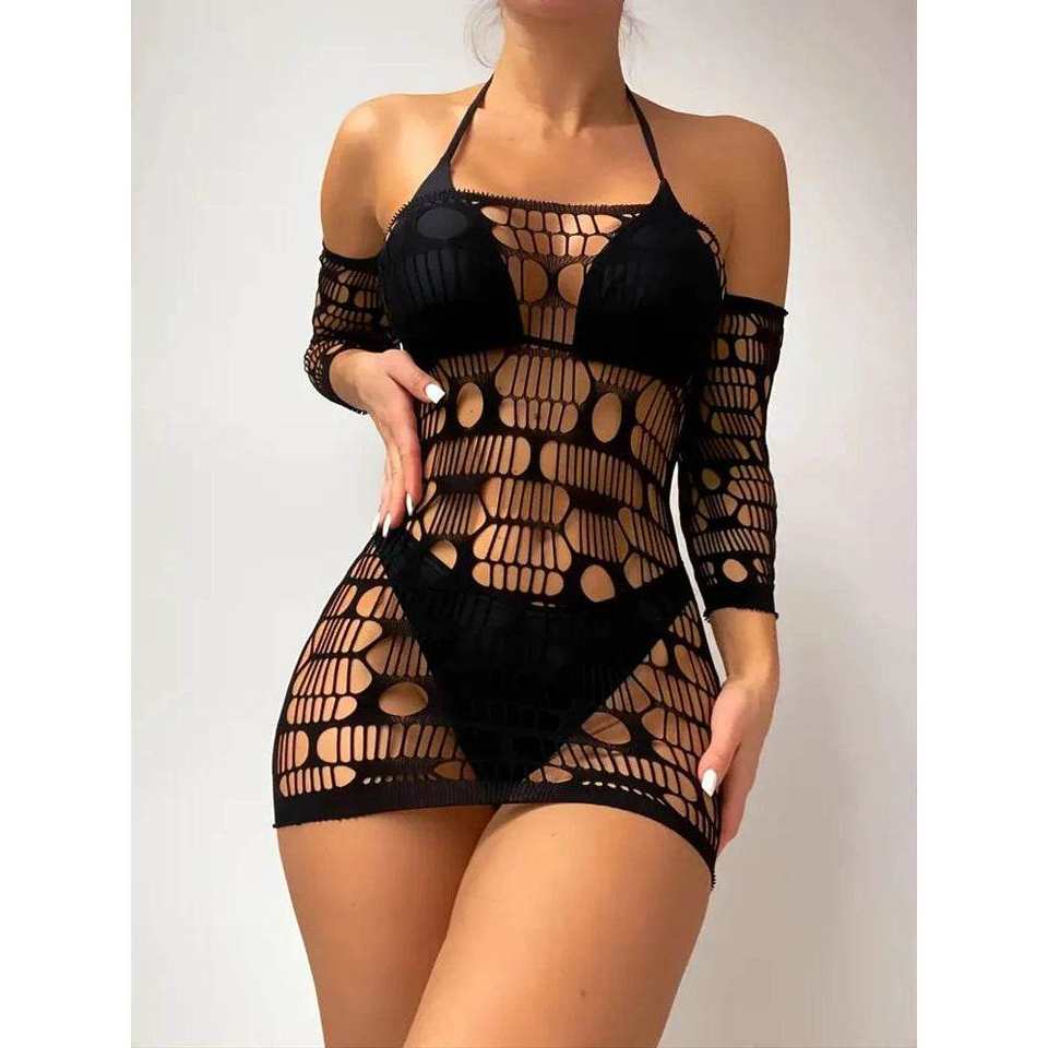 2024 New Fashion Sexy Beach Dress Sheath Silhouette Hollow Fishnet Short Net Skirt Sexiest Slim Short Evening Party Club Wear