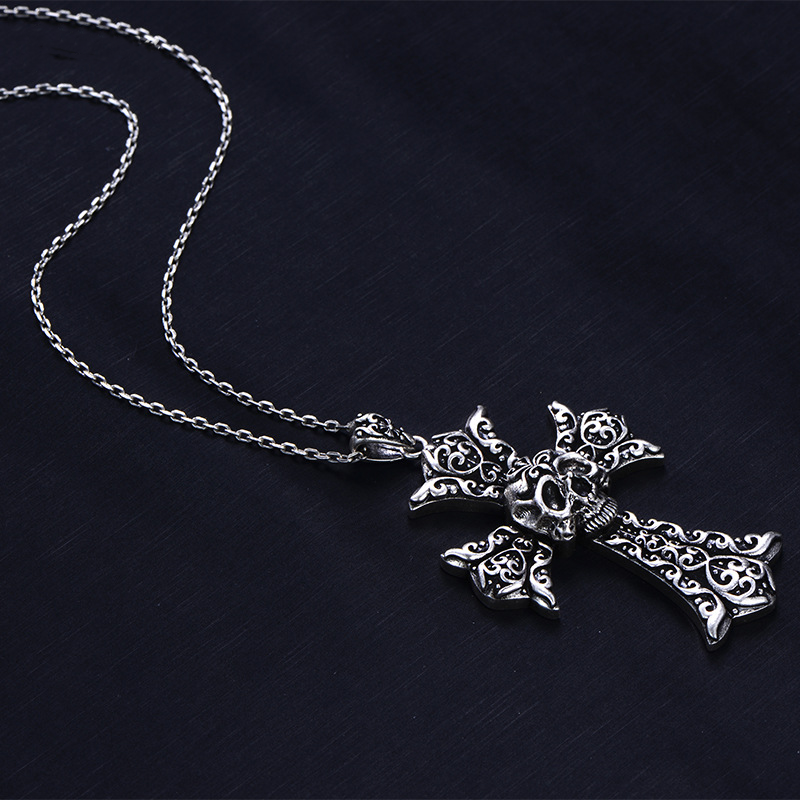 2024 nuove innovazioni 925 collana a catena incrociata con teschio in stile barocco serie argento angelo e diavolo