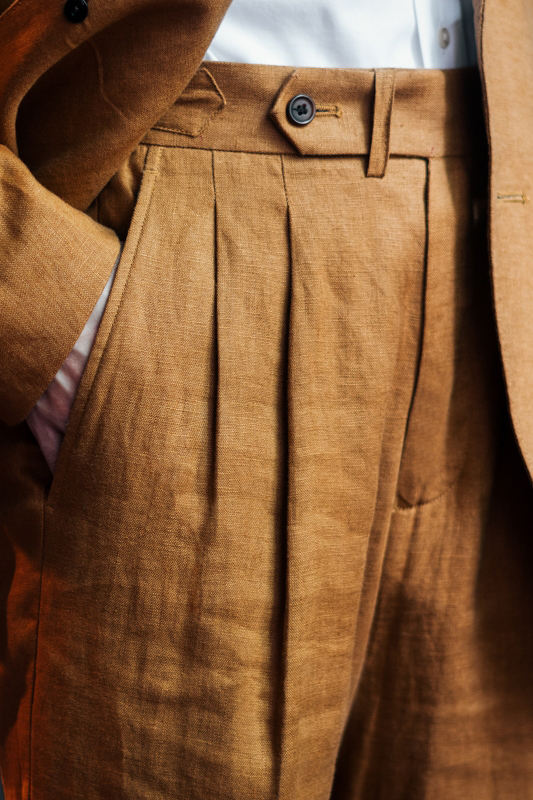2024 nuovi pantaloni italiani con orme di lino retrò pantaloni Business Casual con fibbia di Parigi pantaloni da uomo Slim Fit