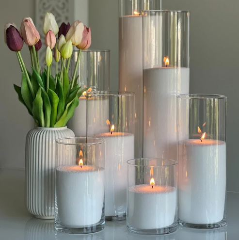 2024 New Products Arrival Large Wide Candle Vase Sand Wax Pillar Candles in Glass Jar Wedding Glass Vases for Candles