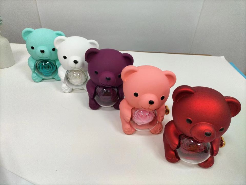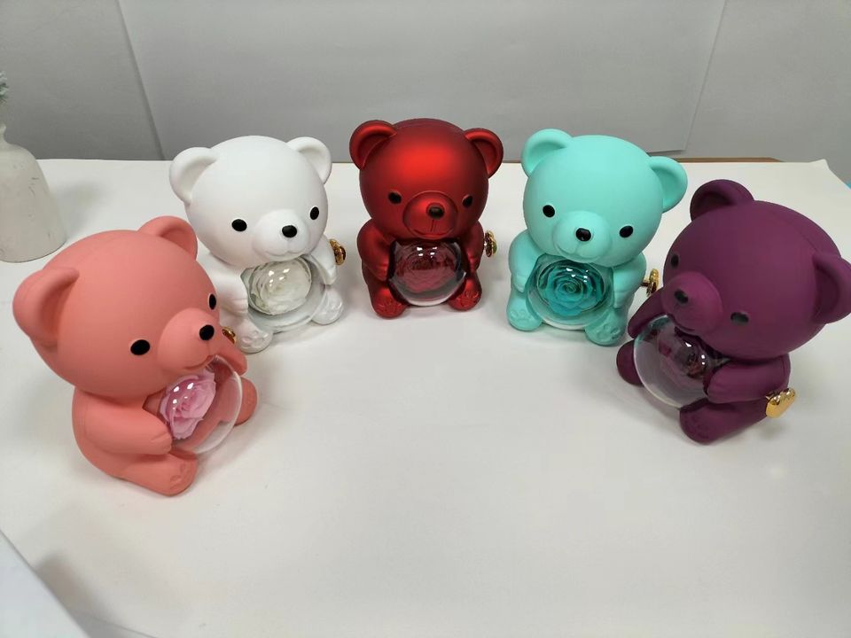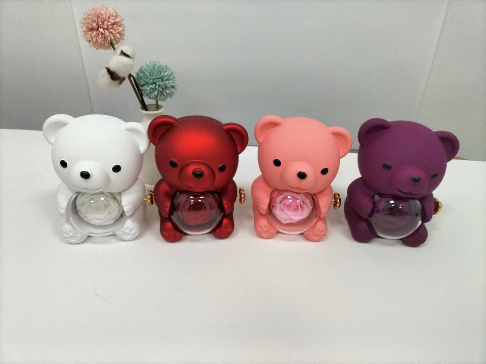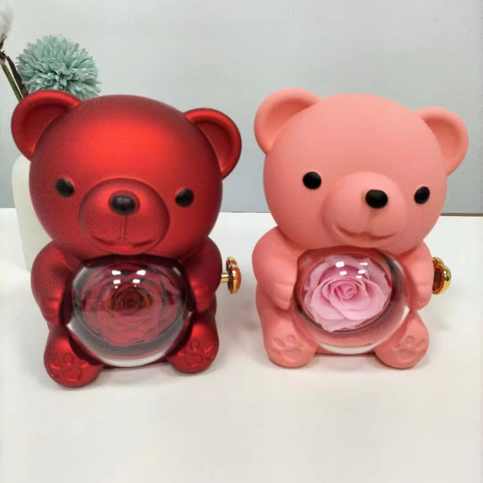 Nuova Collezione 2024: Set di Collana e Anello a Forma di Orsacchiotto con Rosa Stabilizzata in Scatola Rotante per Regali Creativi di San Valentino