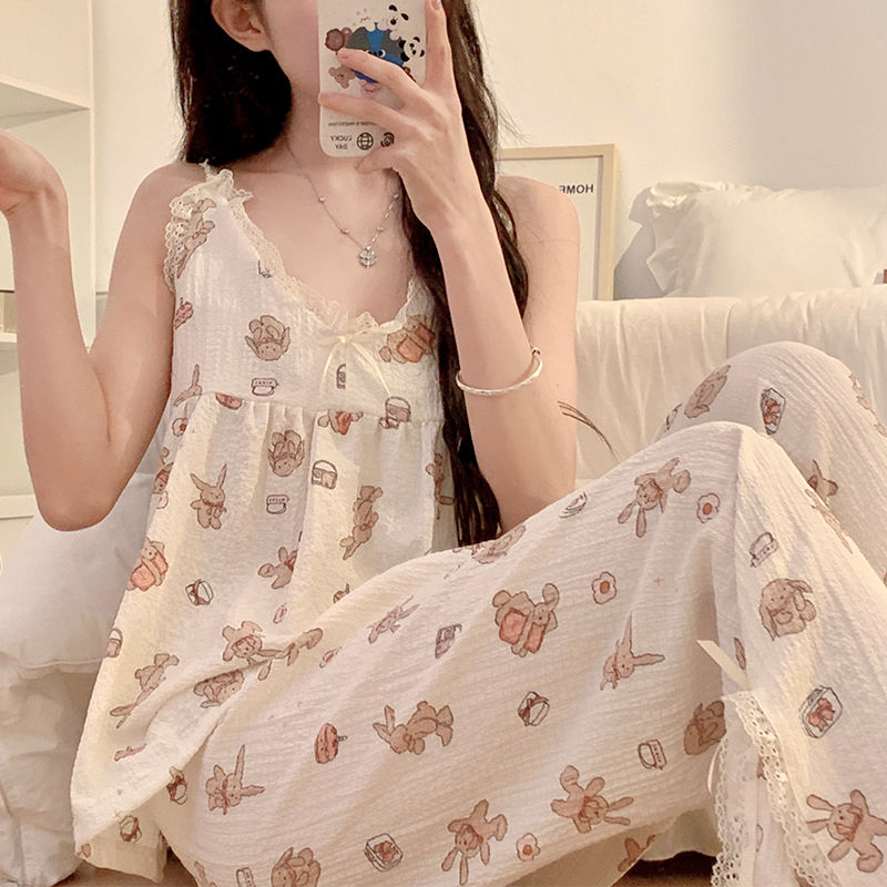 2024 nuovo dolce pigiama pigiama camicia da notte 3 ini 1 piyama in cotone pigiama da notte completo da donna 3 pezzi