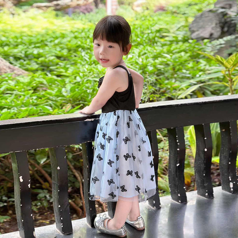 Nuovo 2024 Abito Estivo da Principessa con Gonna in Rete per Bambine, Vestito con Bretelle e Ricamo a Farfalla per Bambine Piccole