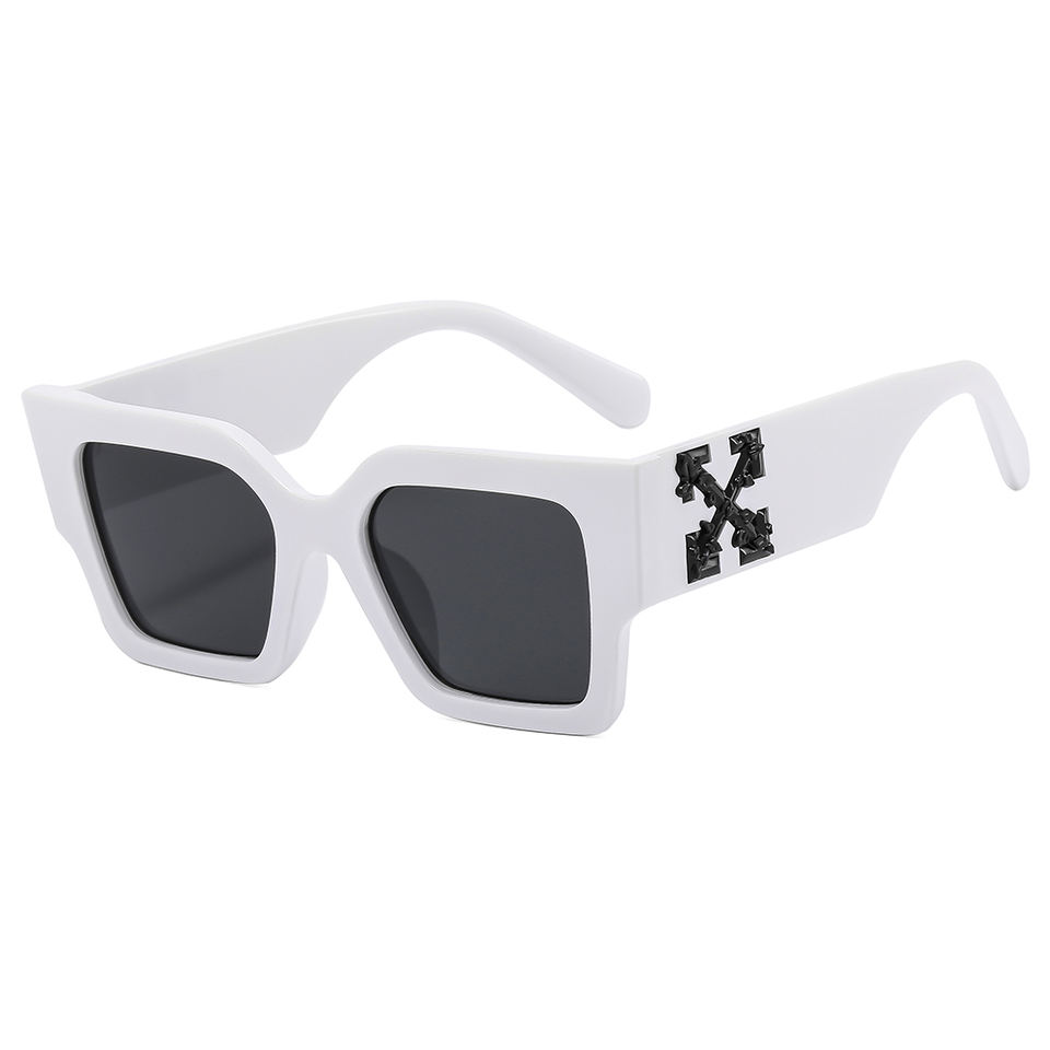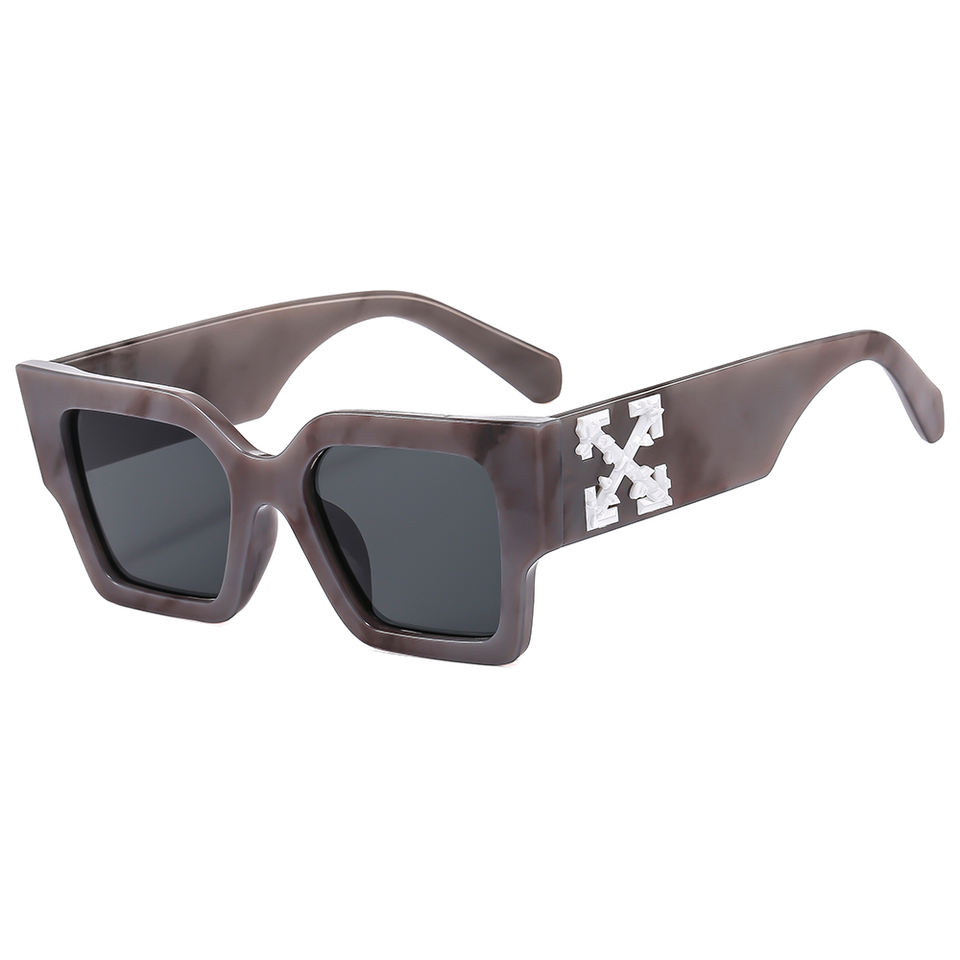 Off-W Occhiali da sole 2024 PC montatura spessa grigia, quadrato/rettangolare uomo/donna, UV400, logo personalizzabile, 2 pz