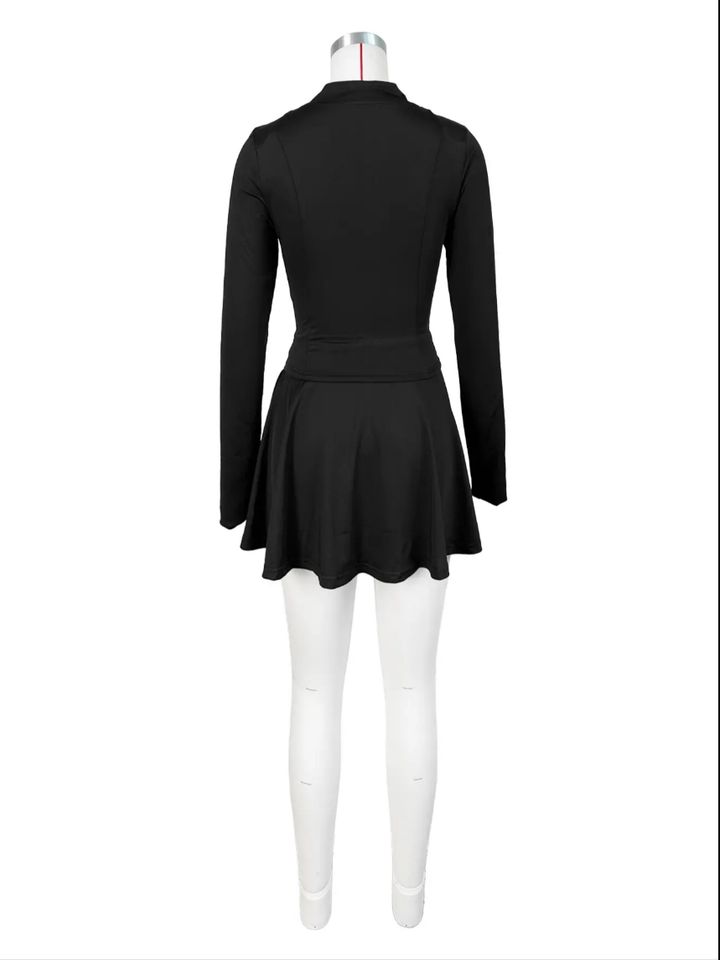 2024 vita stretta sportiva e per il tempo libero, gonna svasata a maniche lunghe, Set di abbigliamento sportivo in due pezzi