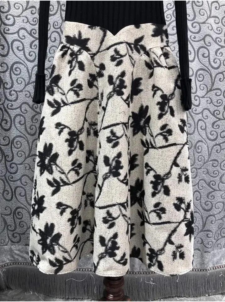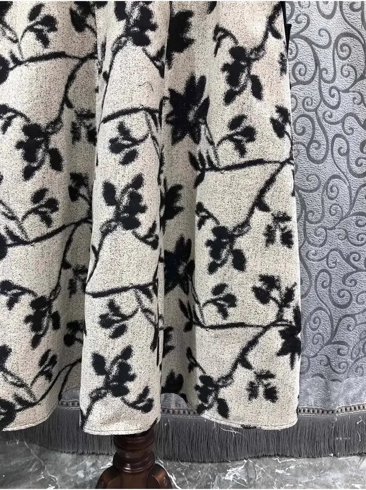 2024 Spring Casual Party One Piece Dress High Quality Knitted Slim Fit Flare Mid-Calf Long Sleeve Dress Print Patchwork Size XL