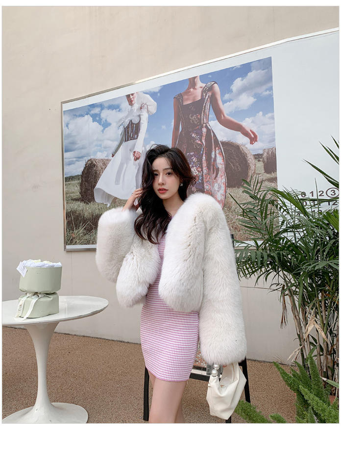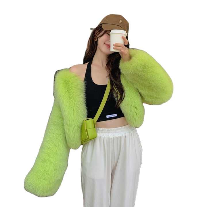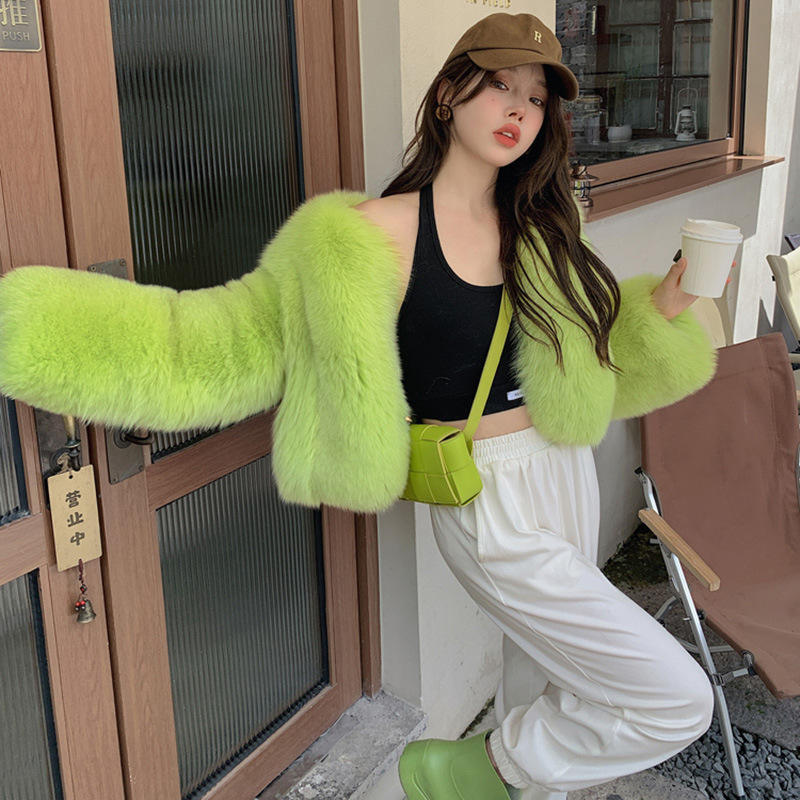 2024 collezione primavera verde a quadri giacca lunga pelliccia da donna Plus Size ampia con pelliccia corta di volpe per le signore invernali