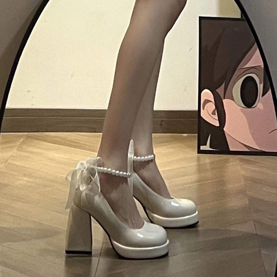 2024 primavera autunno francese décolleté da sposa per donna nuove scarpe Jane bianche retrò col tacco alto con tacco spesso Sole esaltante