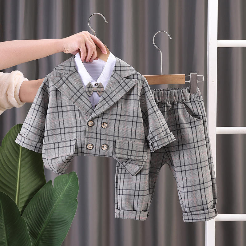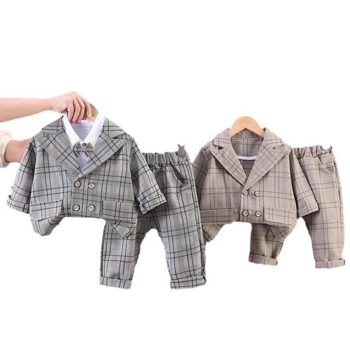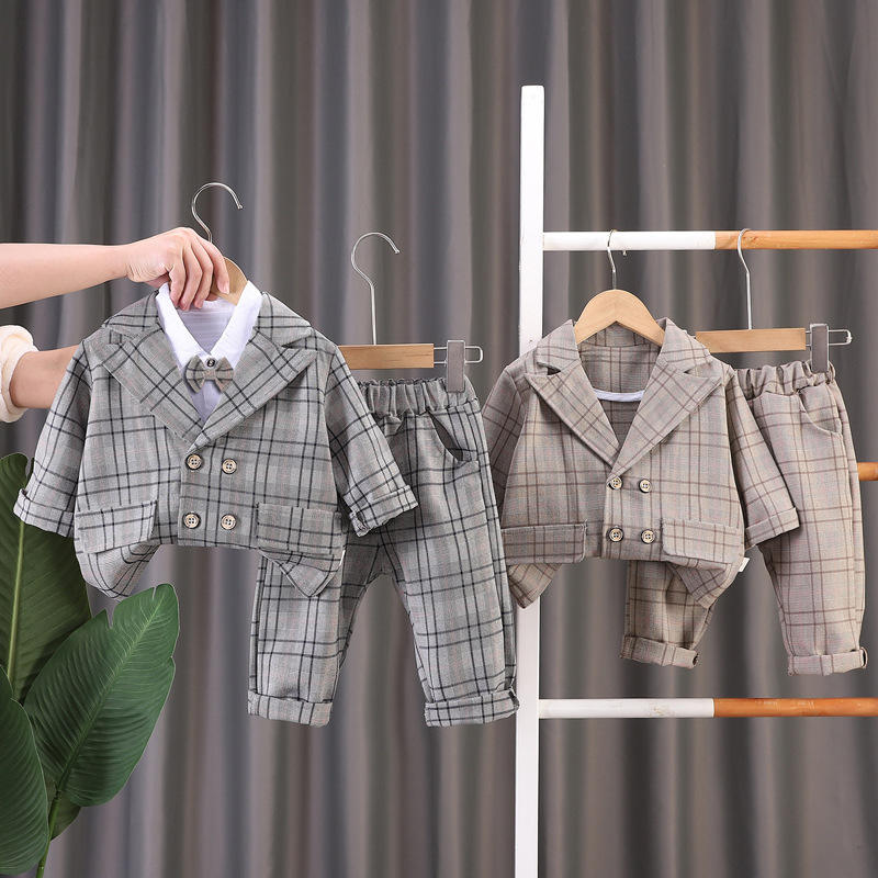 2024 primavera nuovo cappotto vestito da ragazzo 0-5 anni vestito da festa bel coreano bambini a tre pezzi per ragazzi giacca