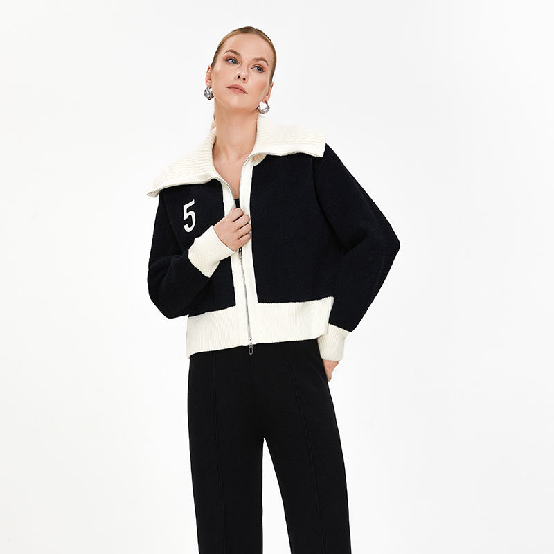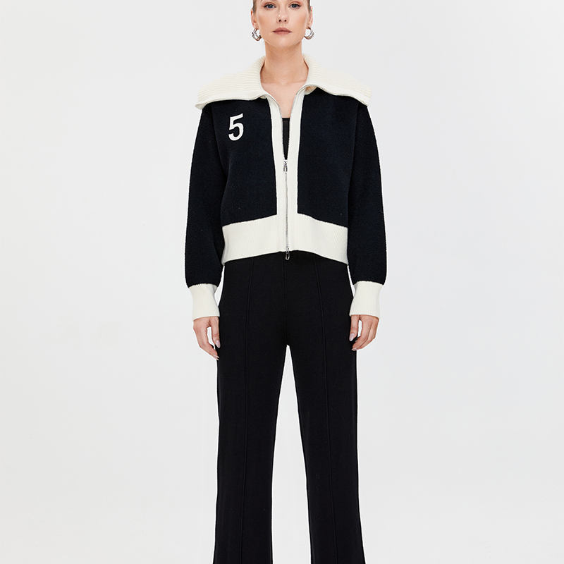 Cardigan da Donna in Maglia a Coste con Zip Bidirezionale e Colori a Contrasto, Novità Primavera 2024