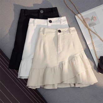 2024 primavera estate nuovo arrivo da donna gonna a trapezio in Denim bianco a vita alta irregolare protezione diurna gonna a vita alta