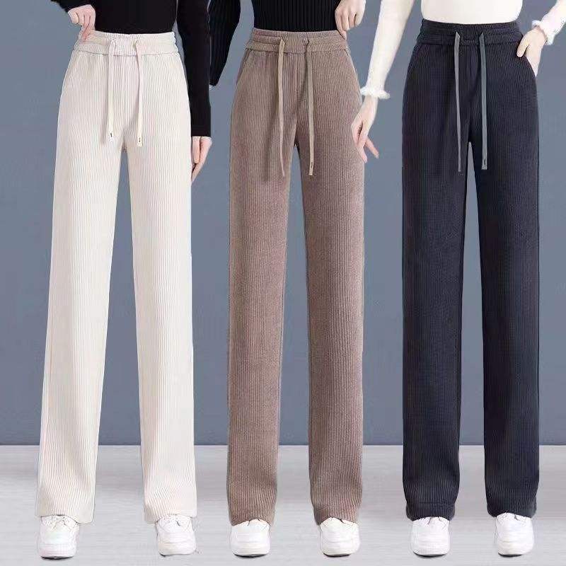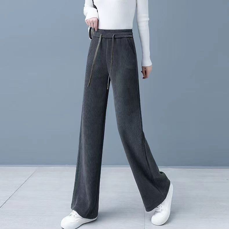 Pantaloni donna in velluto a coste, gamba larga dritta, vita alta elasticizzata, tessuto sottile primaverile, M-3XL, 4 colori, 1 pezzo