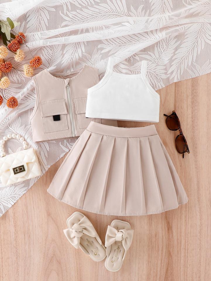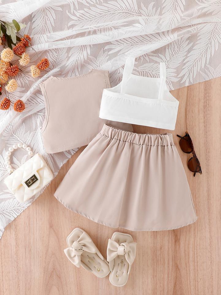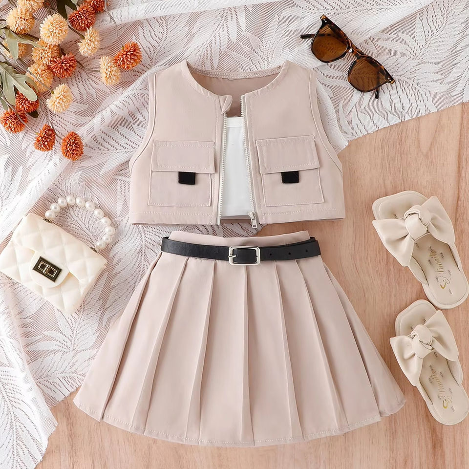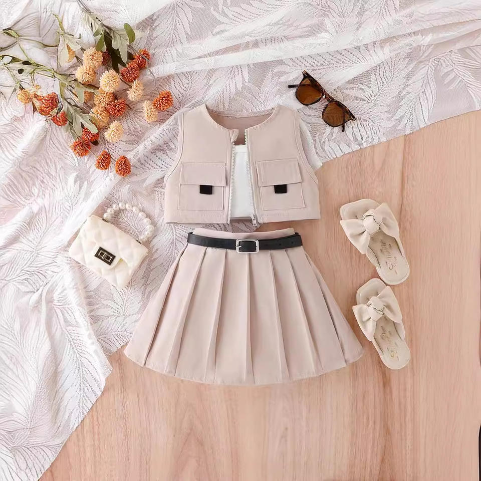 2024 estate in stile Street Design abbigliamento da bambina Set giacca Casual gilet gonna a pieghe abbigliamento bambino