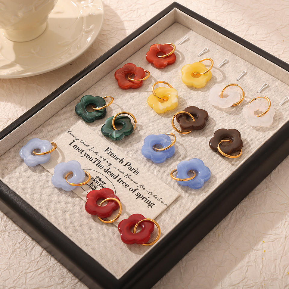 2024 gioielli estivi orecchini di fascino colorato in acciaio inox cerchi impermeabili orecchini di fiori in acrilico cavo per tutti i giorni