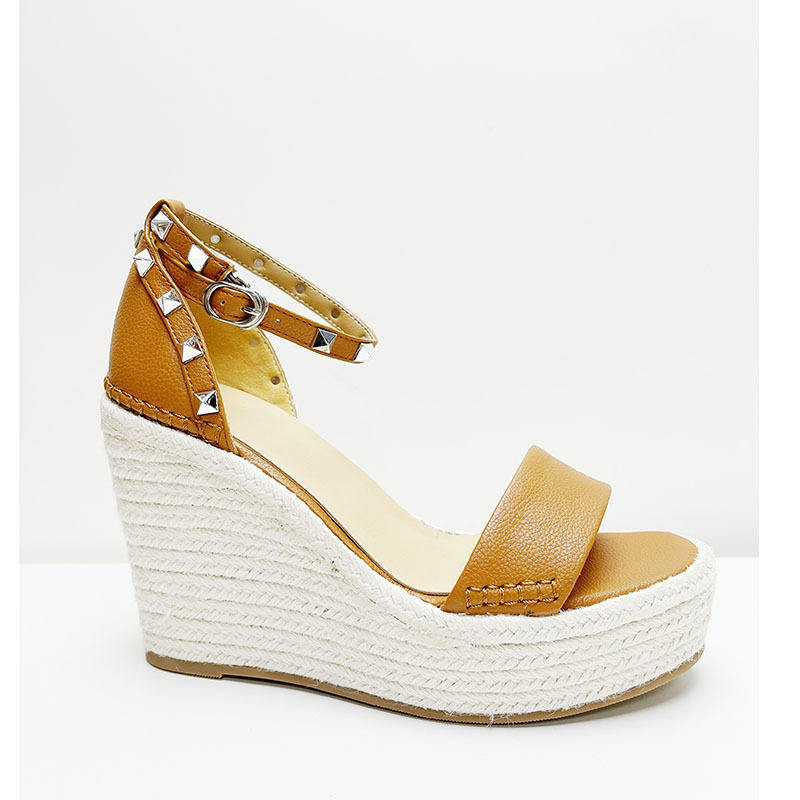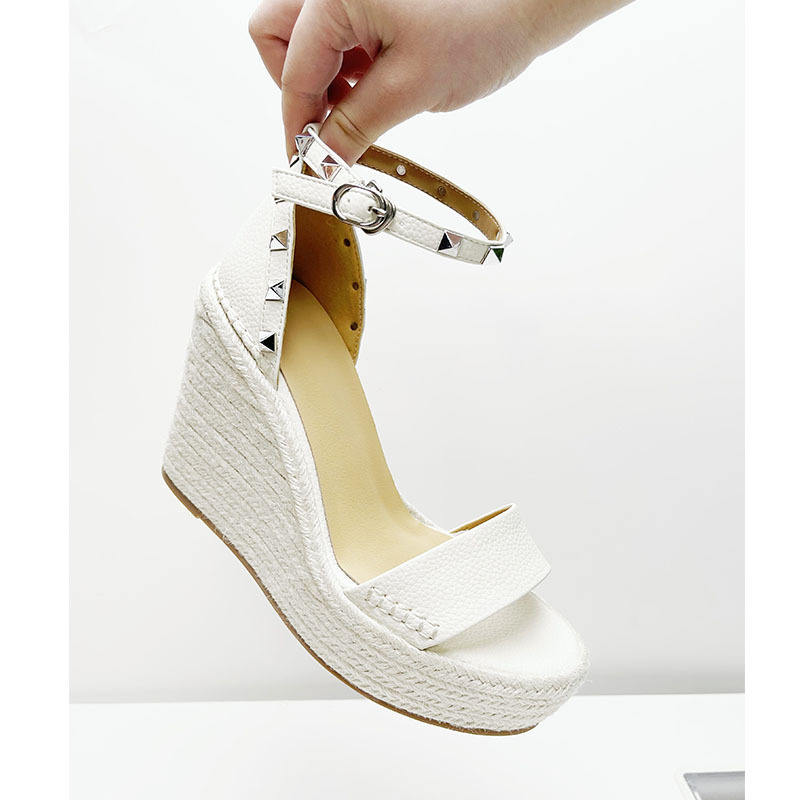 2024 Summer Platform Women Custom Wedges with Straw Heel Metal Rivet Strap Peep Toe High Heels Sandals for Ladies