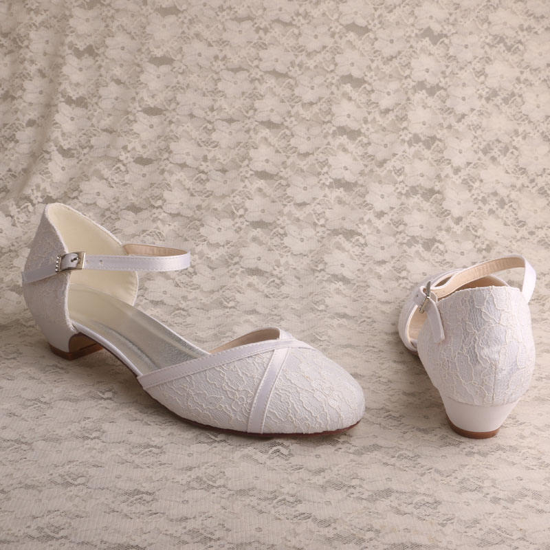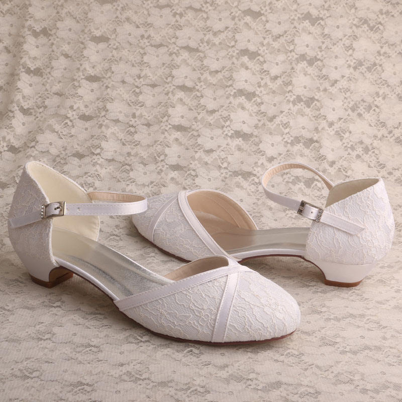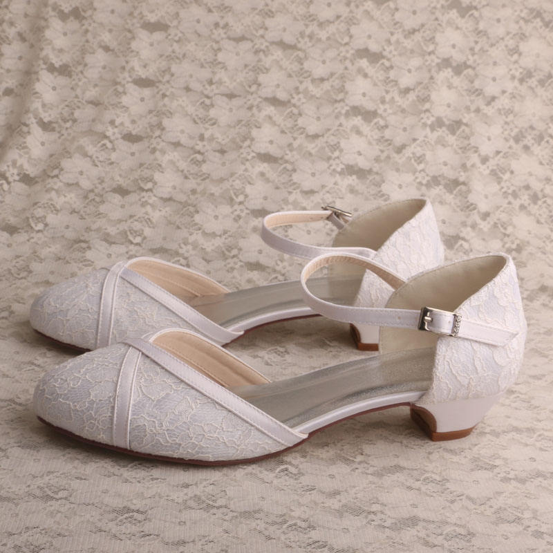 Scarpe 2024 da sposa tacco gattino da donna in pizzo bianco