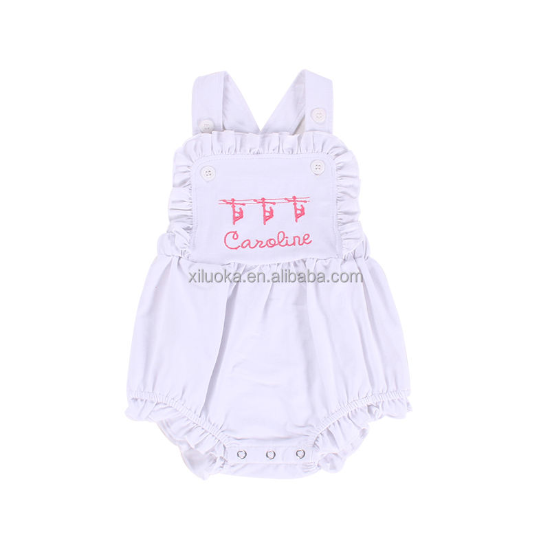 2024 Wholesale Embroidery Sleeveless Blank White Clothes Cotton Baby Bubble Romper