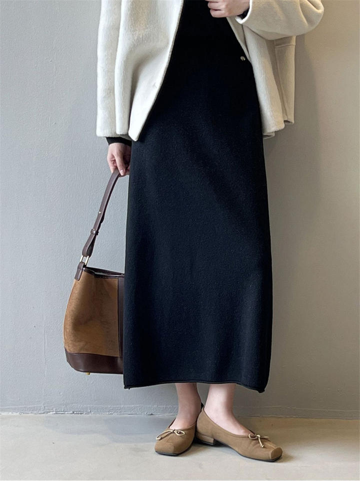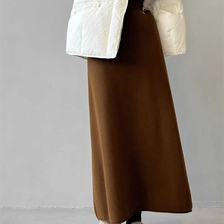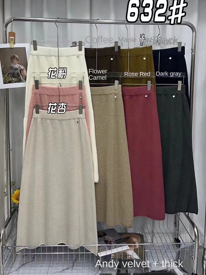 2024 Winter New Thickened Warm Knitted Skirt Women's Korean-Style High Waist Slimming All-Match Elegant Curl Skirt Long Casual