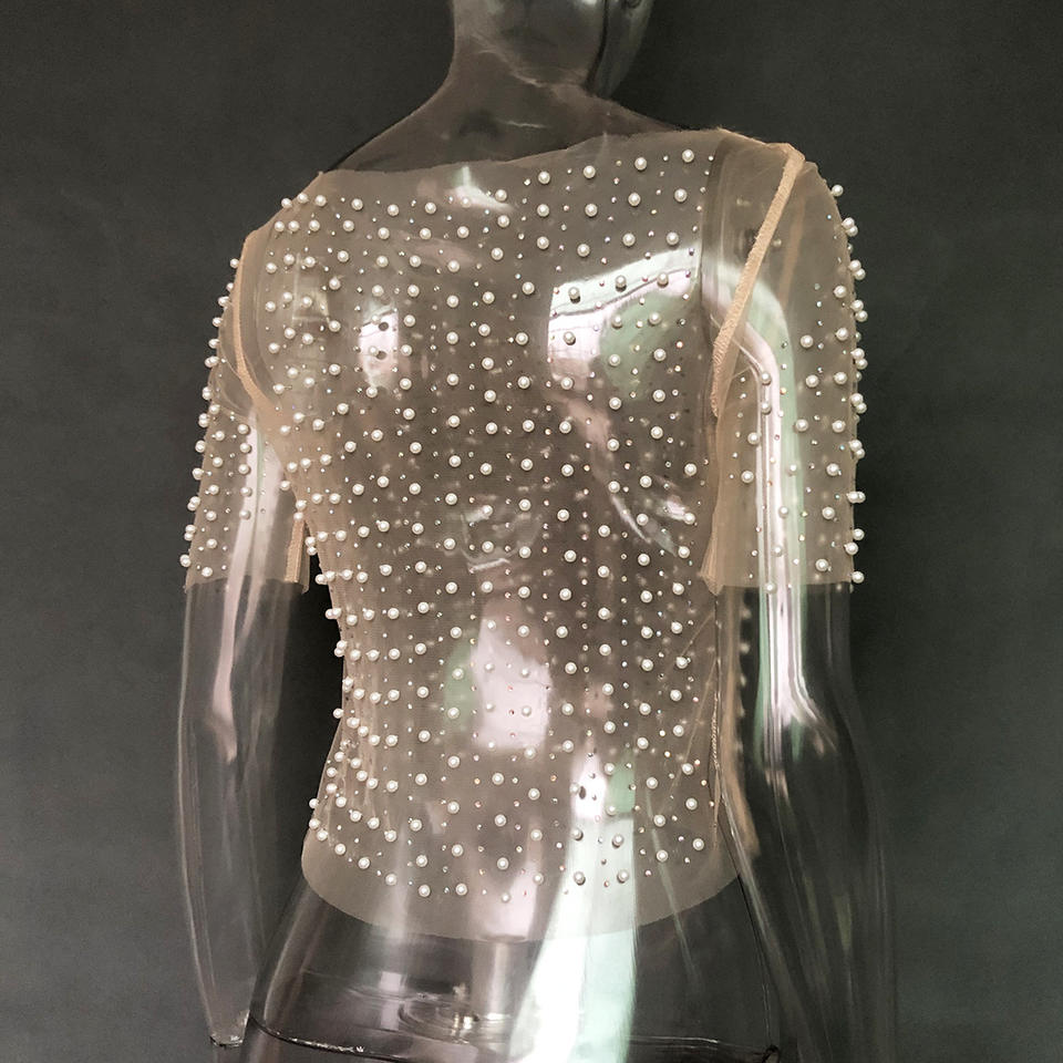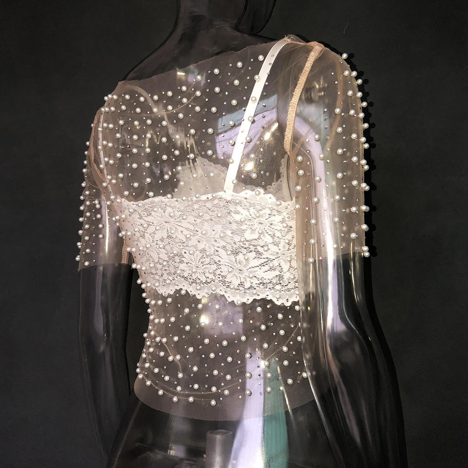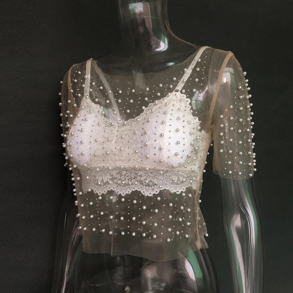 Pearl See Through Mesh Crop