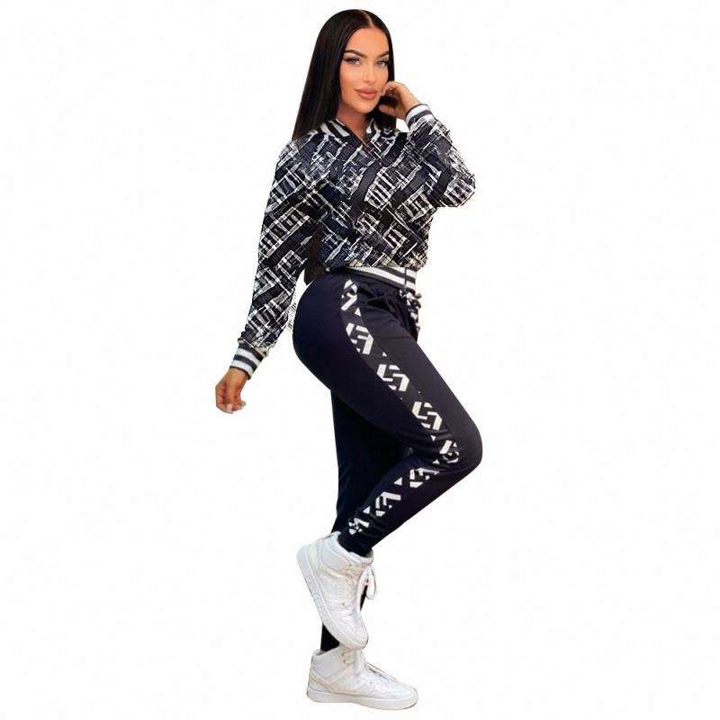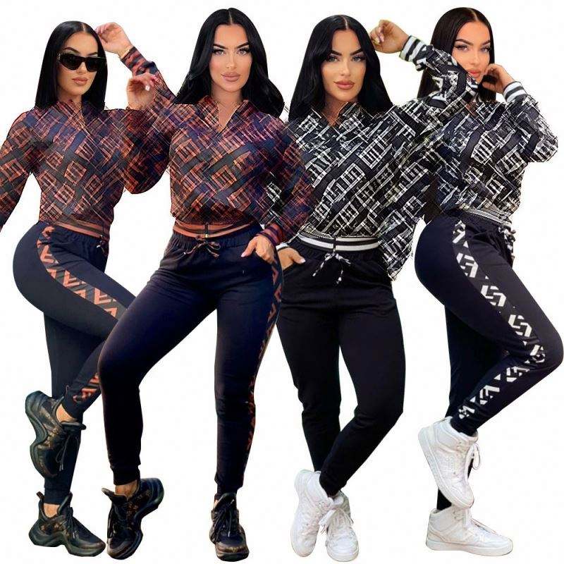 2024 Women's Casual Zippered Jacket and Luxury Brand Print Two-Piece Set for Autumn Winter Boutique Trendy Clothing
