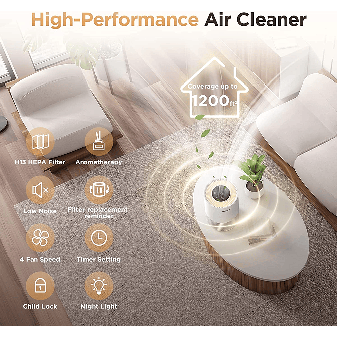 Filtro a Carbone Attivo a Correnti di Eddy di Grado 2024L, Purificatore di Fumo e Particelle da 0,3 Micron, Depuratore d'Aria per Uso Domestico 120m²